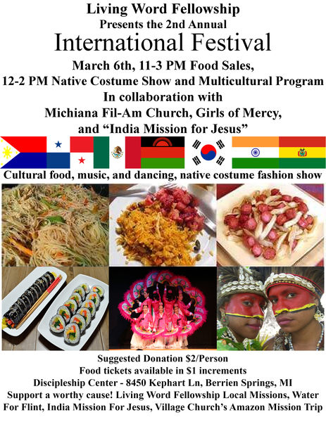 11 a.m.-3 p.m. Raffle ticket prize contributors and sponsors: Baguette de France (Berrien Springs), Mr. Goody's (St. Joseph), Schu's grill and bar (St. Joseph), Mabuhay ethnic foods (Berrien Springs), Berrien Springs Oriental Market (Berrien Springs), Jimmy John's (St. Joseph), Melendez Imports (Berrien Springs), Apple Valley (Berrien Springs), Tim's Too (St. Joseph), China Garden (St. Joseph), Memories of India (St. Joseph), Chan's Garden (St. Joseph).