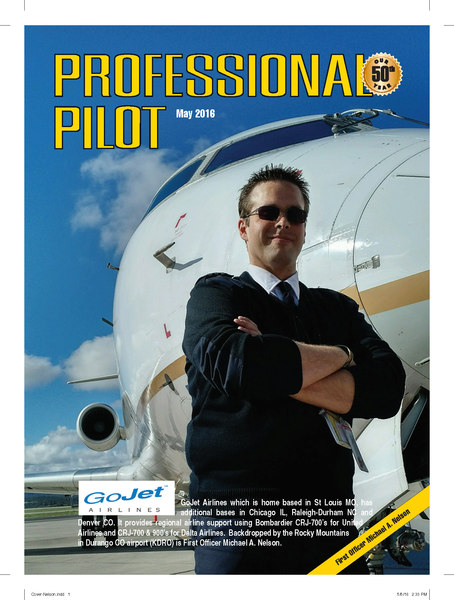 Michael Nelson, pictured here on the cover of "Professional Pilot," is an Andrews University aviation alumnus from La Porte, Indiana.