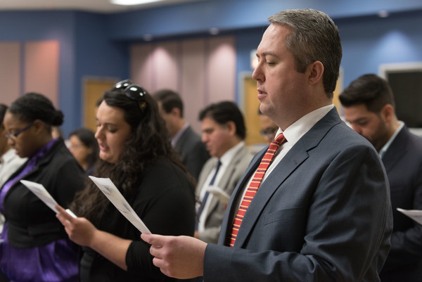 Business students take their oath of ethics as they prepare to enter the workforce.