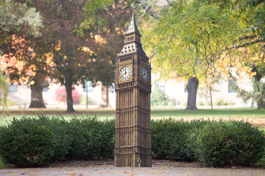 âWeâve designed a shell-like structure to be placed over the campus clock to make it look like the tower housing Big Ben in London,â explains Kristin von Maur, assistant professor of architecture. âIt will be weather-proof for the harsh conditions it will endure every summer and winter, and will be an exact scale replica of the belltower on the Houses of Parliament.â