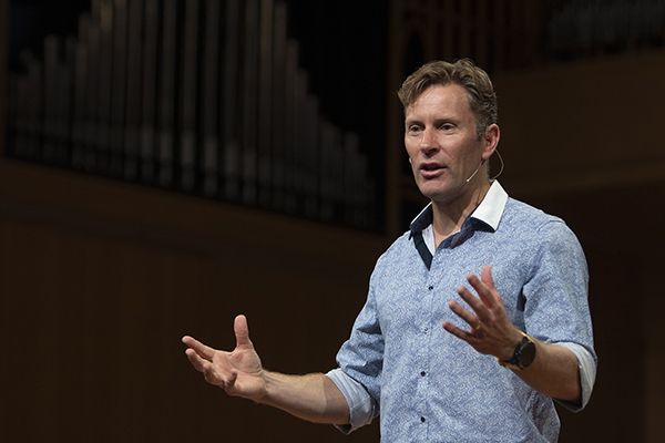 Darren Morton, who obtained a PhD in human physiology and is a certified diplomate of the International Board of Lifestyle Medicine, opened the Wellness Fest by speaking on its theme, “Made to Thrive,” for University Chapel.