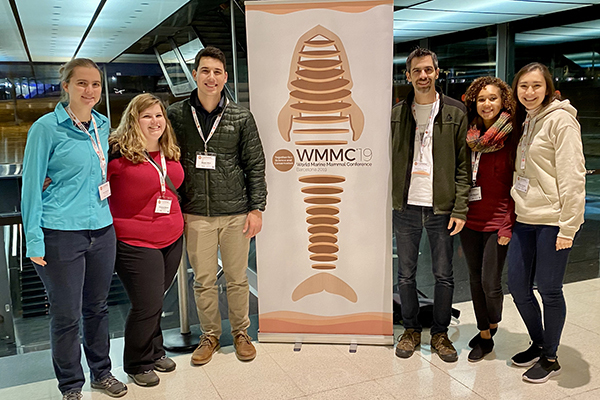 (L–R) Mindy McLarty, graduate student alumni; Amanda Moore, graduate student; Adam Weir, senior; Daniel Gonzalez-Socoloske, associate professor of biology and recipient of a Fulbright U.S. Scholar Program award; Nina Woodard, senior; and Juliane Johnson, senior