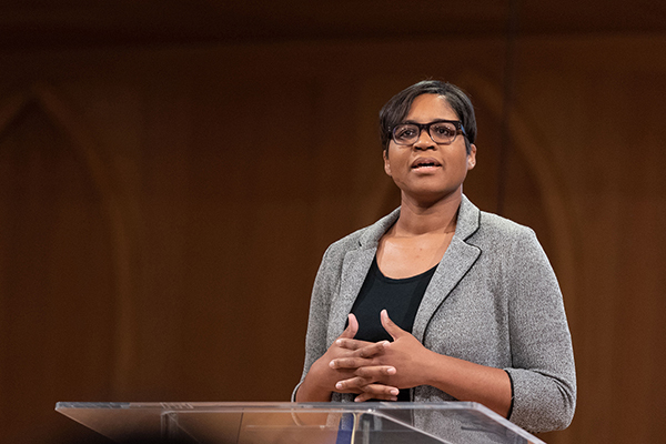 Keynote speaker Morgan Medlock, MD, MDiv, MPH, served as the speaker for several key events. She explored the topic of “Origins” for Black History Chapel on Feb. 13, Impact Vespers on Feb. 14, and Celebration Sabbath on Feb. 15 in the Howard Performing Arts Center.
