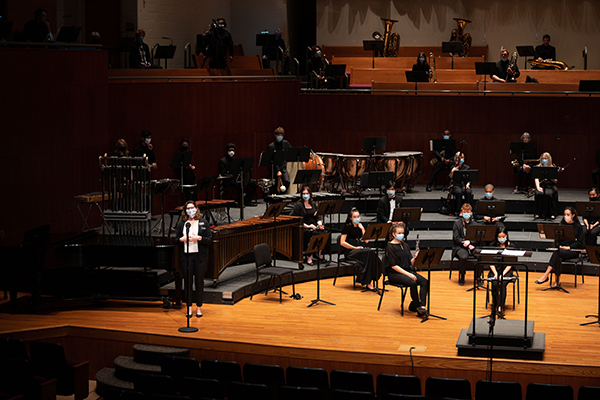 The Andrews University Wind Symphony performs in the Howard Performing Arts Center.