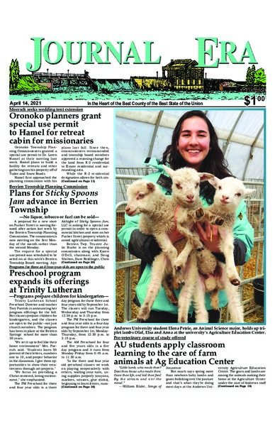 The Andrews University Agriculture Education Center was featured in a recent piece in the Journal Era, "AU students apply classroom learning to the care of farm animals at Ag Education Center."