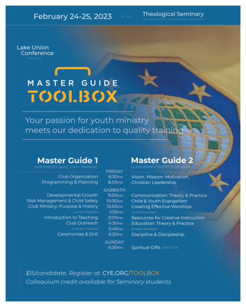 Master Guide training offered Feb. 24 and 25 at the Seminary. Attend just one or all eight seminars as your schedule permits, and be signed off on your Master Guide card.