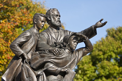 Sculpture of J.N. Andrews and his children on the campus of Andrews University.