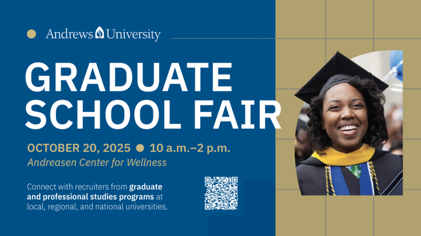 Andrews University is excited to host an upcoming graduate fair. The fair will take place on Monday, Oct. 20, 2025, from 10 a.m.–2 p.m. in the Andreasen Center for Wellness. This campus-wide event offers organizations and graduate programs the opportunity to recruit talented students for graduate, professional studies and other continuing education opportunities. Students from all majors are invited.