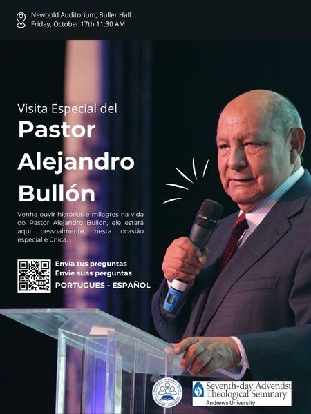 Join us this Friday, Oct. 17, at 11:30 a.m. in Newbold Auditorium, Buller Hall, for an inspiring and unforgettable experience. Pastor Bullón has dedicated his life to sharing the gospel and has seen God move powerfully across South America and beyond.
