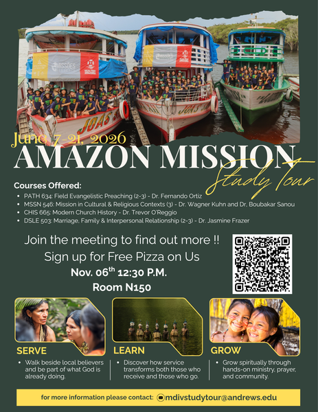 Join an unforgettable mission experience along the Amazon River, where faith, learning and service come together. This trip offers a unique blend of academic engagement, including lectures and theological reflection, and hands-on mission work, such as preaching and...