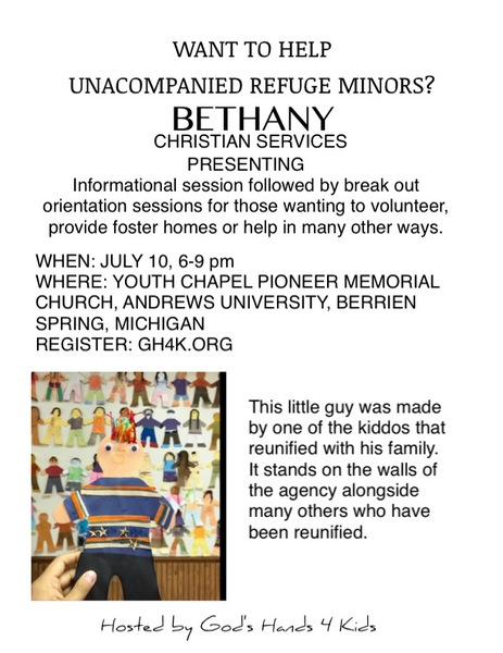 There are unaccompanied refugee minors in Southwest Michigan being cared for in foster homes with their care being managed by Bethany Christian Services. God's Hands 4 Kids is working with Bethany. Currently we are collecting NEW stuffed animals,...