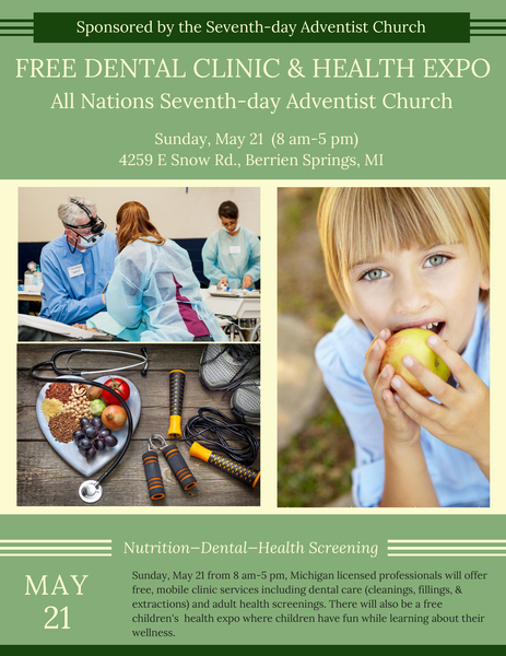 All Nations SDA Church invites you to join its 11:30 a.m. worship experience this Sabbath, May 6. Errol McLean will deliver the message titled "Hall of Fame." Our Bible study starts at 10 a.m. ... read moreFREE DENTAL CLINIC & HEALTH EXPO
