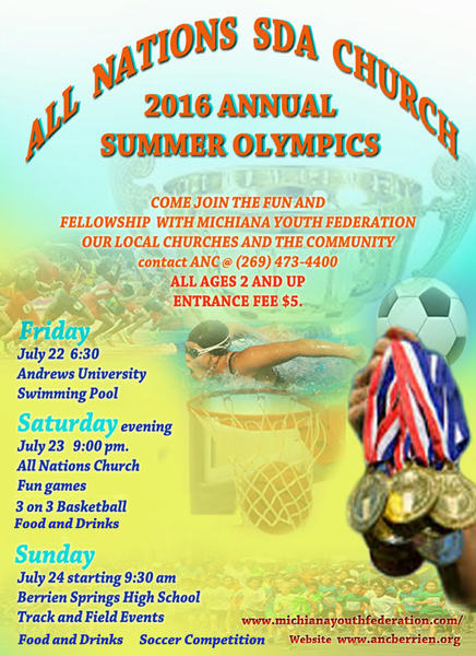 The All Nations SDA Church in coordination with the Michiana Youth Federation invites you to its 2016 Annual Summer Ooympics games.