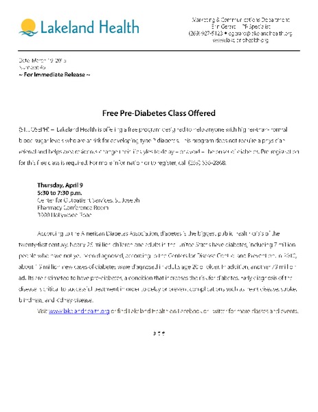 Free Congestive Heart Failure Class Offered (ST. JOSEPH) –  Lakeland Health will offer “Living Well with Heart Failure,” a free class for community members about congestive heart failure (CHF). This chronic condition is... read more