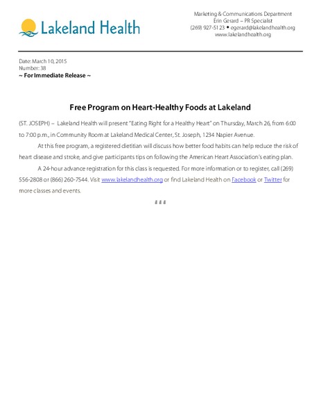 Lakeland Offers Class on Nutrition in Cancer Treatment (ST. JOSEPH) – Lakeland Health will offer a free nutrition class to cancer patients undergoing treatment and their families. “Nutrition Matters in Cancer Treatment” will... read moreNiles-Westside Church Service for March 14