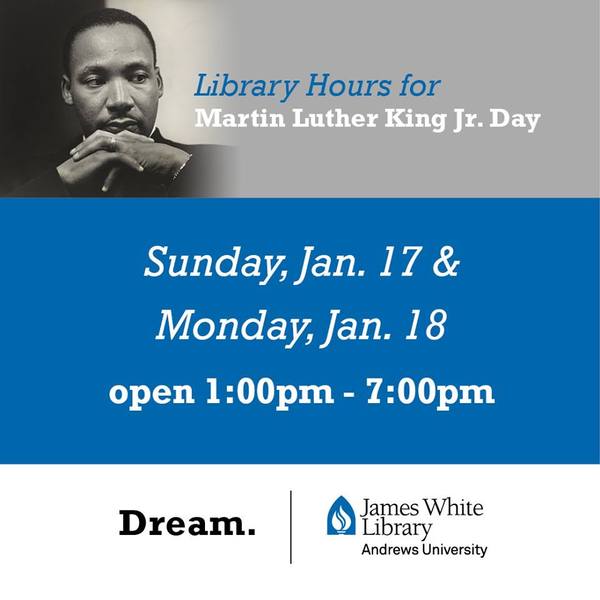 In honor of Martin Luther King Jr holiday, the library will be open as follows:
