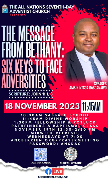Join us this Sabbath, November 11, at 11:45 a.m. for an uplifting worship experience as Martin Hanna presents "A Bitterweet Mission: No Pain, No Gain." Adult and Children's Sabbath School begins at 10:30 a.m. We look forward to... read more