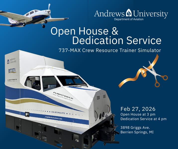Date: Friday, Feb. 27, 2026 Time: Open House: 3 p.m., Dedication Service: 4 p.m. Location: Andrews University Airpark—open to the public The Department of Aviation warmly invites you to join... read moreHearts for Mission Banquet